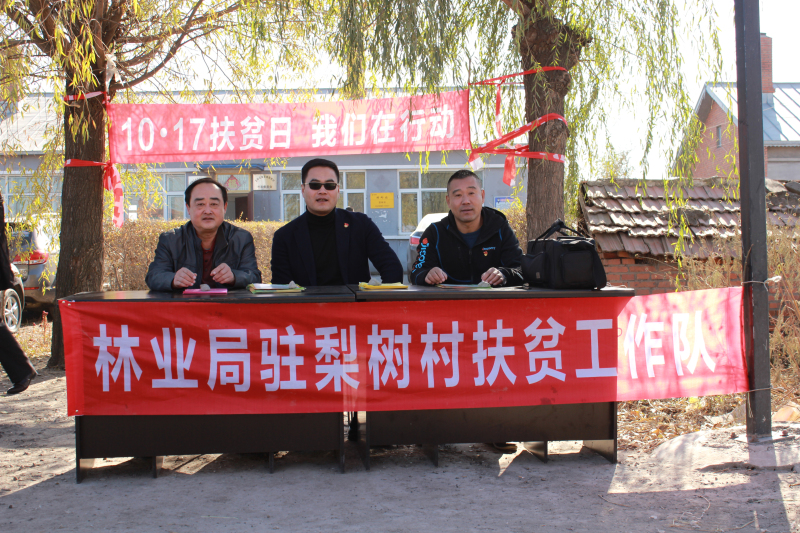 2017年10月17日是全国第四个"扶贫日",为进一步宣传贯彻国家扶贫政策,营造全社会关心扶贫、参与扶贫、支持扶贫的浓厚氛围,根据省驻村办要求开展"五个一"活动的要求并结合喜迎十九大·共筑新辉煌支部主题党日活动;17日上午,北林区林业局党总支书记、局长孙庆峰、带领全体班子成员及局机关党员干部一起深入到所包扶的秦家镇梨树村,一起在梨树村开展了一系列宣传和走访活动。