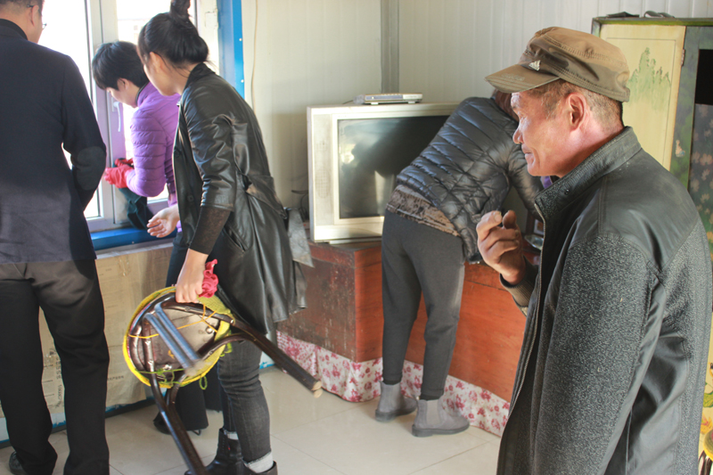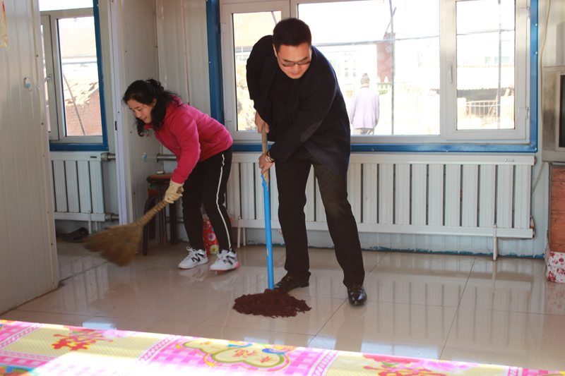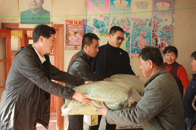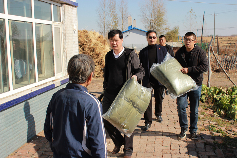 二、扶贫队员及机关支部党员为贫困户献爱心活动。在驻村工作队队长梨树村第一书记吕宏伟同志的带领下,驻村工作队队员及局机关支部党员为梨树村的残疾人贫困户马永申家打扫卫生。马永申胳膊残疾,妻子腿部有残疾,行动不便,家里的彩钢房从去年入住后就没有好好的收拾过,党员干部们不怕脏不怕累,擦玻璃、拖地面、收拾灶台、洒扫庭院,将屋子收拾的窗明几净,马永申激动的拉着吕宏伟同志的手说"多谢共产党、多谢吕书记"。随后,全体党员干部在局长孙庆峰同志的带领下又来到92岁的贫困户王进贤家中,王进贤家的彩钢房去年刚刚入住,今秋被一场突如其来的大风刮翻了房盖,是吕宏伟同志带领扶贫队员们为他家重新修复了房屋,看到孙局长和吕宏伟同志又来到家并为他和妻子带去牛奶等生活用品,王进贤感动的说"太感谢了、太感谢了,共产党好啊!"党员干部将老人的家收拾的干干净净,老人说你们真是及时雨啊,入冬了我们老两口正犯愁屋子还没收拾呢,这回好了,可以"猫冬"了,大家都开心的笑了。在贫困户赵春杰家中,孙庆峰同志和吕宏伟同志认真听取了其当前家庭生产生活中需要解决的问题,为其送去了棉被、牛奶等生活用品,鼓励他们重拾信心,相信党和政府不会放弃他们,一定会带领他们走向富裕生活;此次活动共为15户贫困户送去了棉被等过冬物资和生活必需品。